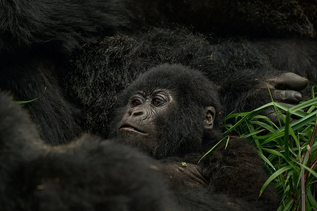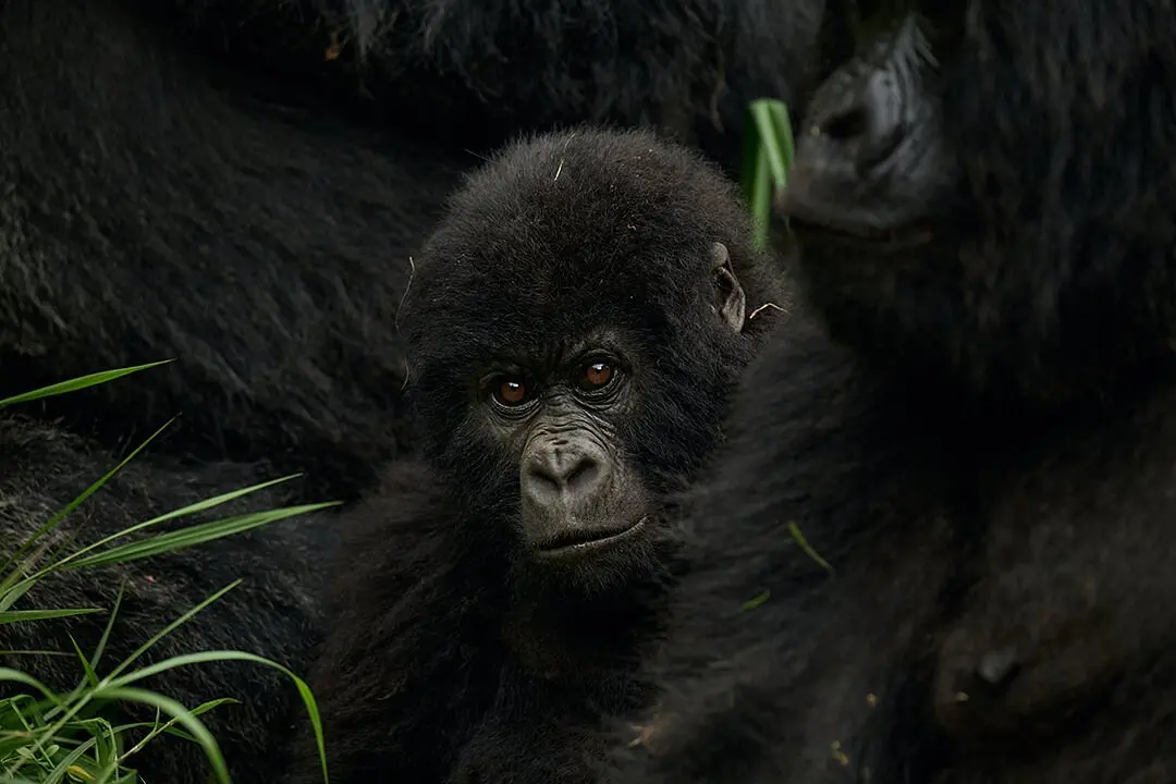 Mountain gorillas are gentle giants. They are habituated to human presence and display no aggression unless threatened. Rangers maintain a safe 7-meter distance and guide you throughout.