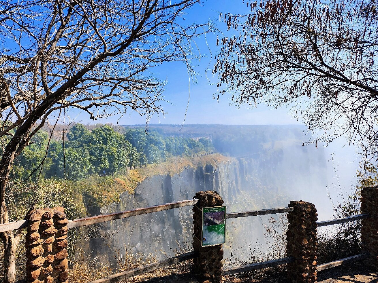 The Zimbabwe side provides the classic postcard views, showing the widest and most panoramic sections of the falls.